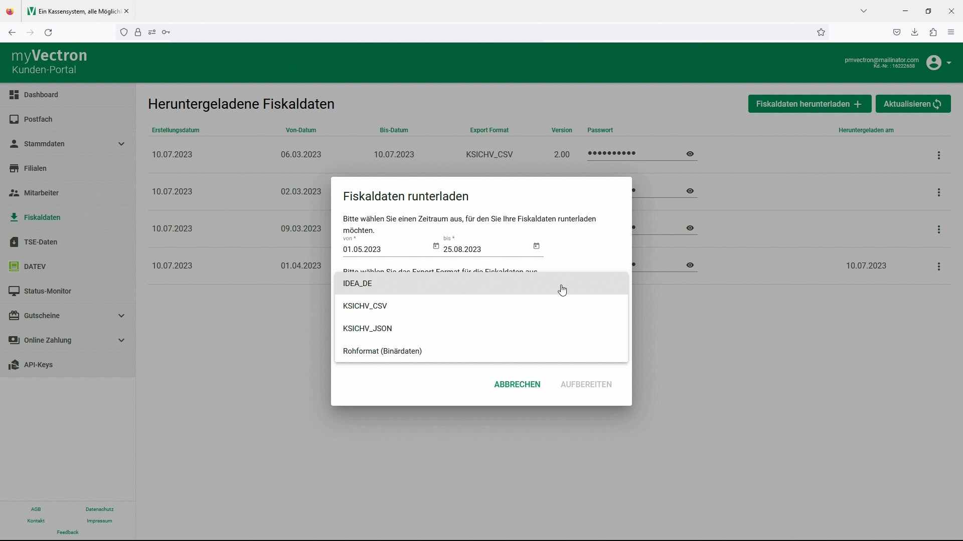 myVectron Fiskalarchiv